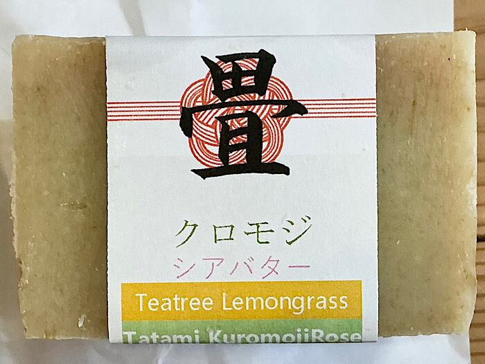 材料:オリーブオイル、柚子、月桃、桃の葉、ユーカリ、熊笹、ココナッツオイル、パームオイル、レッドパームオイル、はちみつ、ひまし油、レモングラス精油、スウィートオレンジ精油、シトロネラ精油、弱酸性水