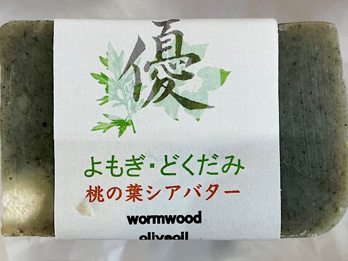 材料:オリーブオイル(月桃葉、どくだみ、桃の葉抽出)、ココナッツオイル、パームオイル、ひまし油、シアバター、よもぎ、レモングラス精油、ティトゥリ精油、弱酸性水